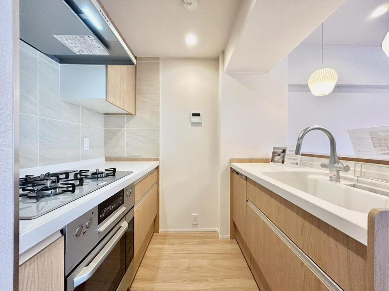 家事の時短に効果的な収納のし易いオールスライド収納、綺麗を保ち易い人造大理石トップ、静音シンクなど、使い勝手の良いキッチンを新規導入致しました。