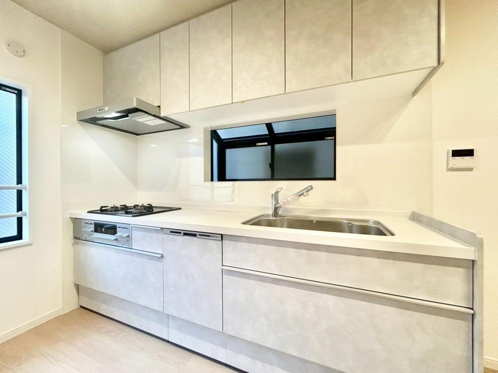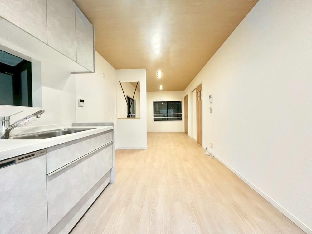 明るく開放的な空間が広がる、キッチン・ダイニング・リビング。室内には豊かな陽光が注ぎ込み、爽やかな住空間を演出。ホームパーティーでもゲストと一緒に料理を楽しみながら楽しい時間を過ごせそう。