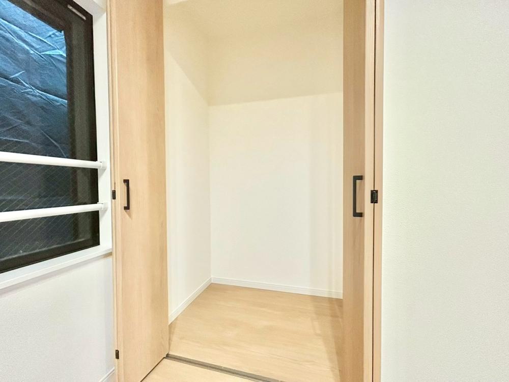 奥行きのあるクローゼットを採用。衣装ケースや、掃除機といった電化製品まで多くの物を収納できるようなつくりになっております。是非一度、ご自身の目でお確かめ下さい。