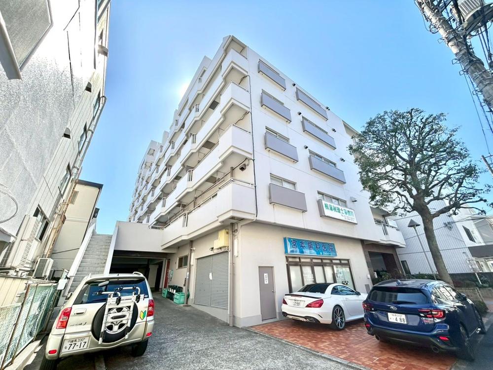 青空に映える白い外観が印象的なマンションです。明るい陽光が降り注ぐ住まいは、家族の笑顔を育む温かい日常を演出します。駐車場も完備しており、お出かけもスムーズです。