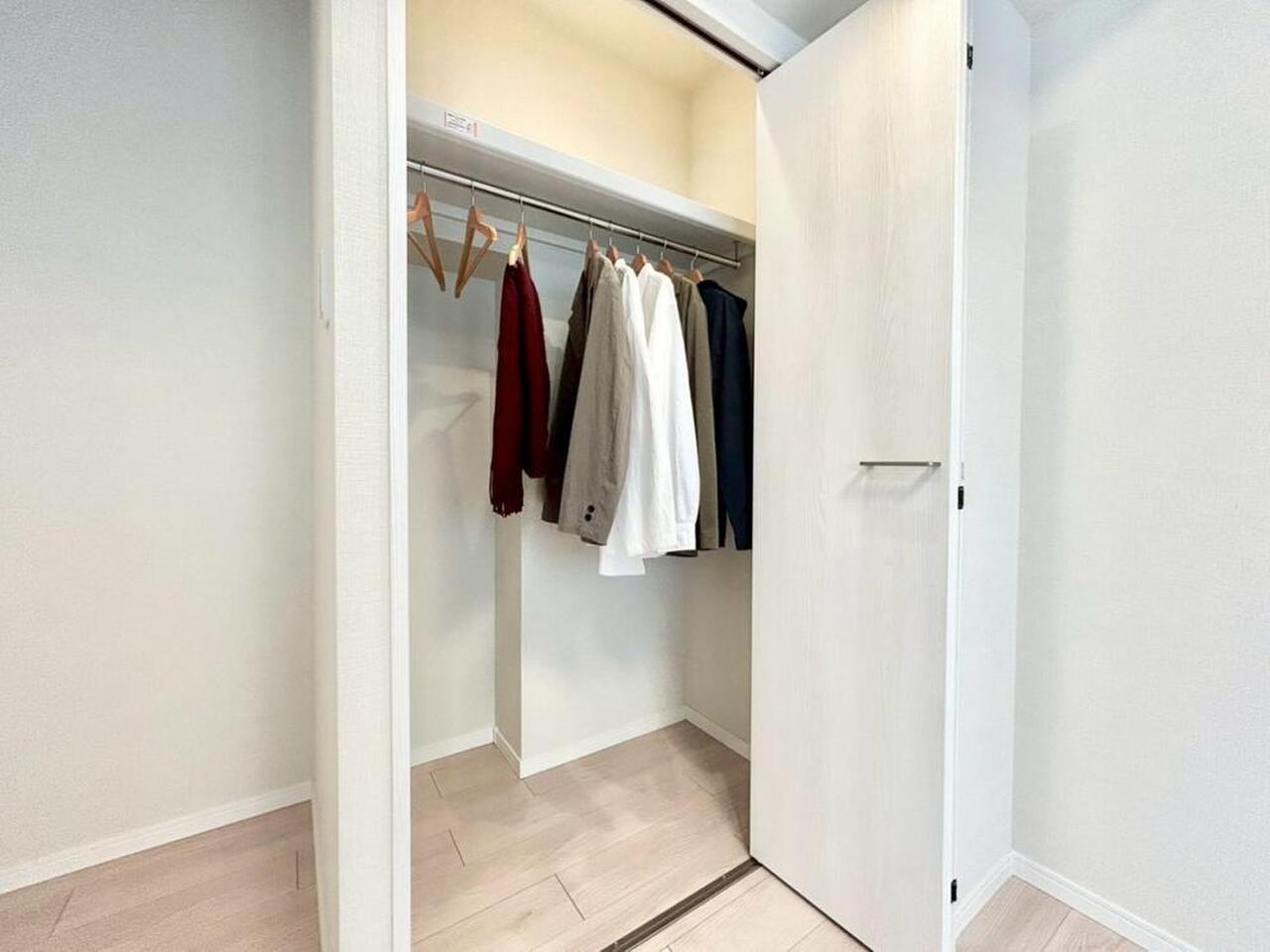 奥行きのあるクローゼットを採用。衣装ケースや、掃除機といった電化製品まで多くの物を収納できるようなつくりになっております。是非一度、ご自身の目でお確かめ下さい。