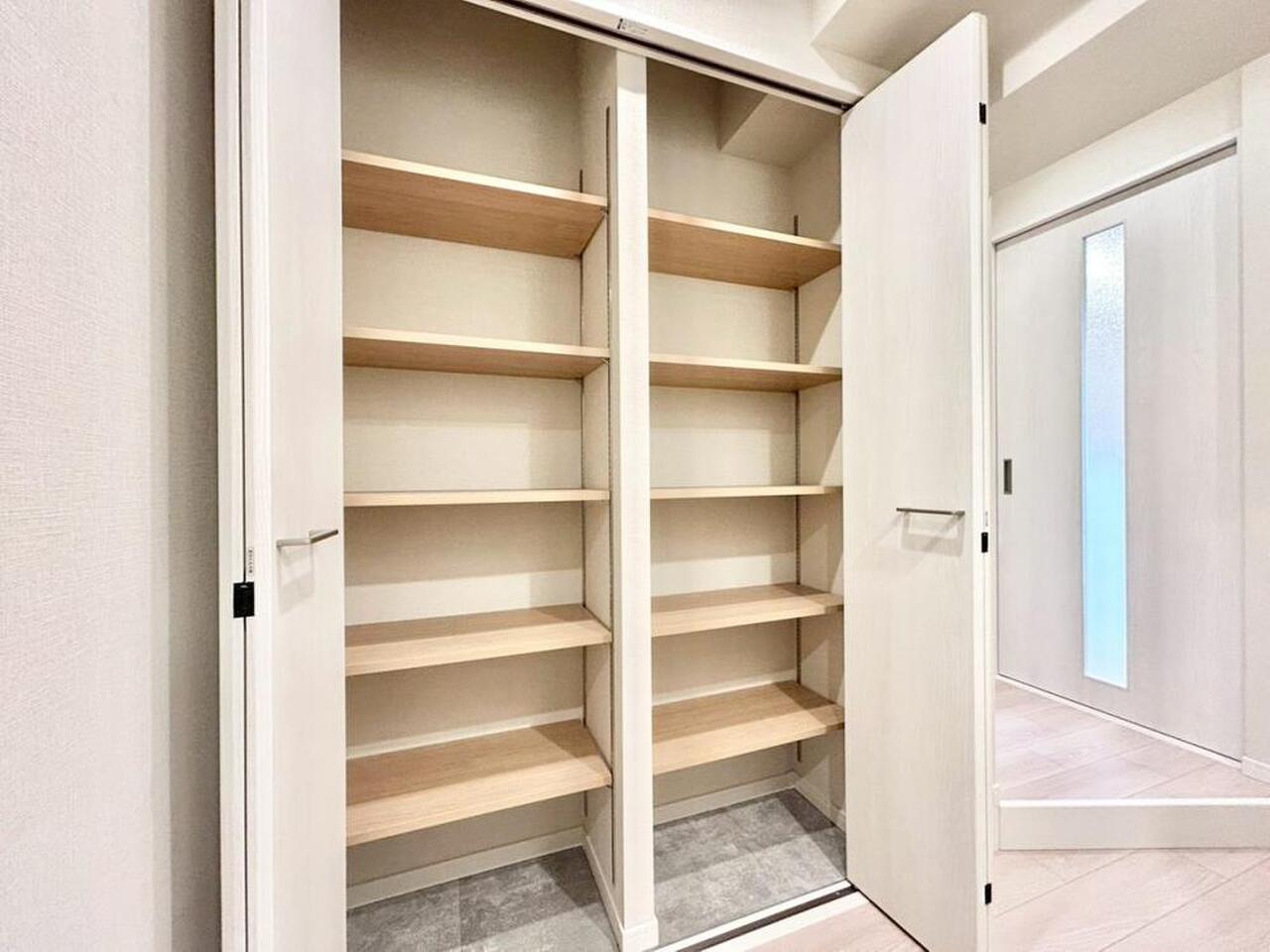 建物内部の収納には拘りました。共有部分に設けた収納。少しでも空いているスペースを収納にすることで、無駄のない空間を演出しております。お荷物が多い方にも安心です。是非、現地をご確認ください。