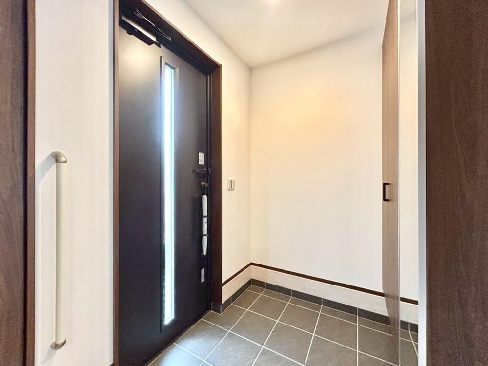 「一号棟」広々とした玄関には拘りました。毎日、みんなを見送り、そして迎え入れる場所だから。ダウンライトを使用しお洒落に演出。帰りたくなる家をテーマに設計してみました。いつも「人」と「家」の間に・・・。