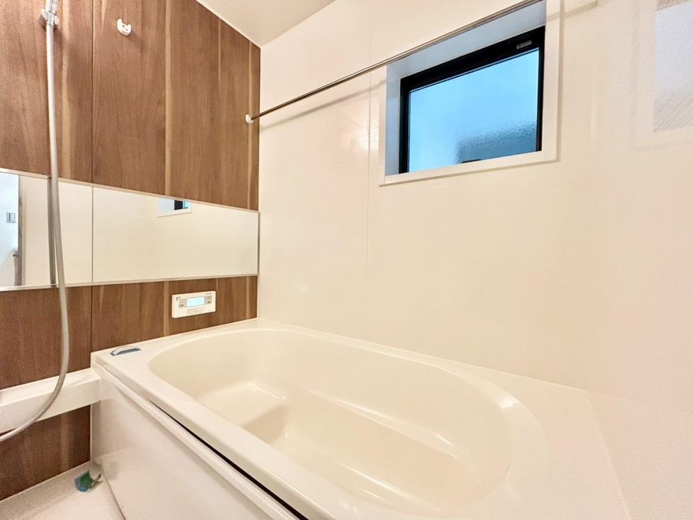 「一号棟」一日の疲れを癒してくれる場所ですので、空間自体も落ち着きのあるカラーで纏めて、全体的にゆったりとした雰囲気を演出しております。お子様と一緒に入浴頂ける十分な広さもございます。