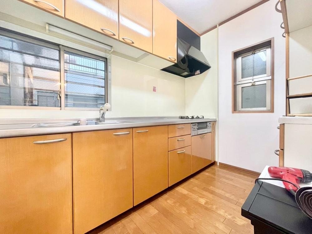 システムキッチンの収納は、デッドスペースになりやすいキャビネット内を有効活用できる、スライド式収納を採用しました。また、シンクとカウンターは隙間なく接合され、お手入れ簡単。