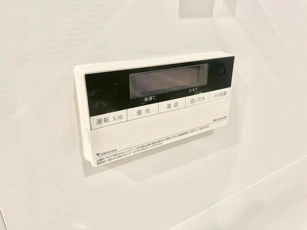 お風呂場と台所に操作リモコンがあり、キッチン近くにある給湯リモコンは、お料理の最中でもリビングで寛いでいるなかでもボタン一つで簡単に沸かせて便利ですね。