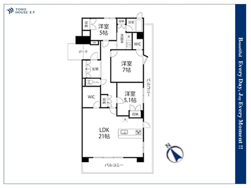 頬をなでる優しい風を感じることが出来るバルコニー。つい深呼吸をしたくなる気持ちの良い眺望はこのお部屋の自慢です。もちろんお洗濯物を干すスペースとしても十分な広さがあります。