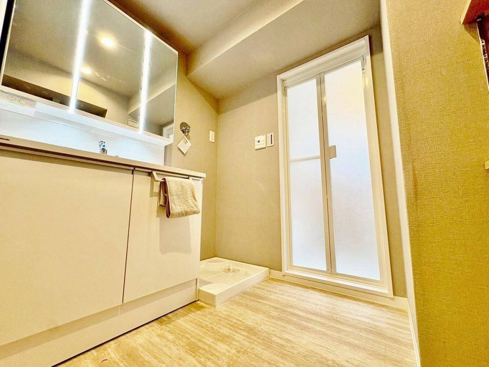 手で洗いたい大切な服など、広く使えると助かる洗面台は汚れの付きにくい形状と素材で造られております。