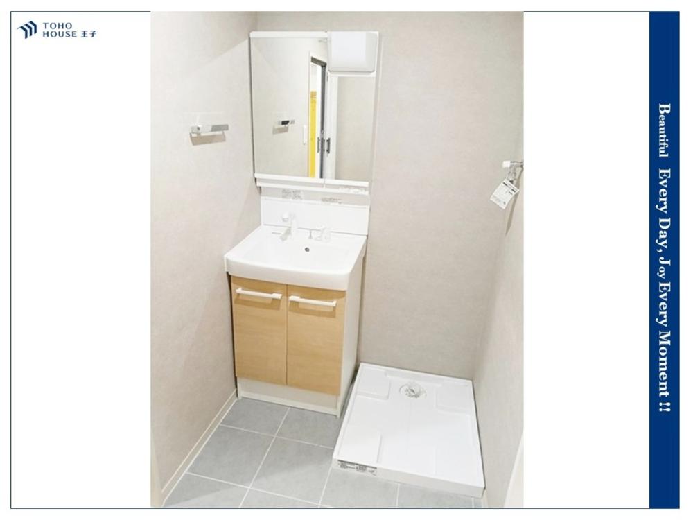 身だしなみのチェックがしやすい大きな鏡、下には収納がたっぷり。スッキリとした空間を演出いたします。