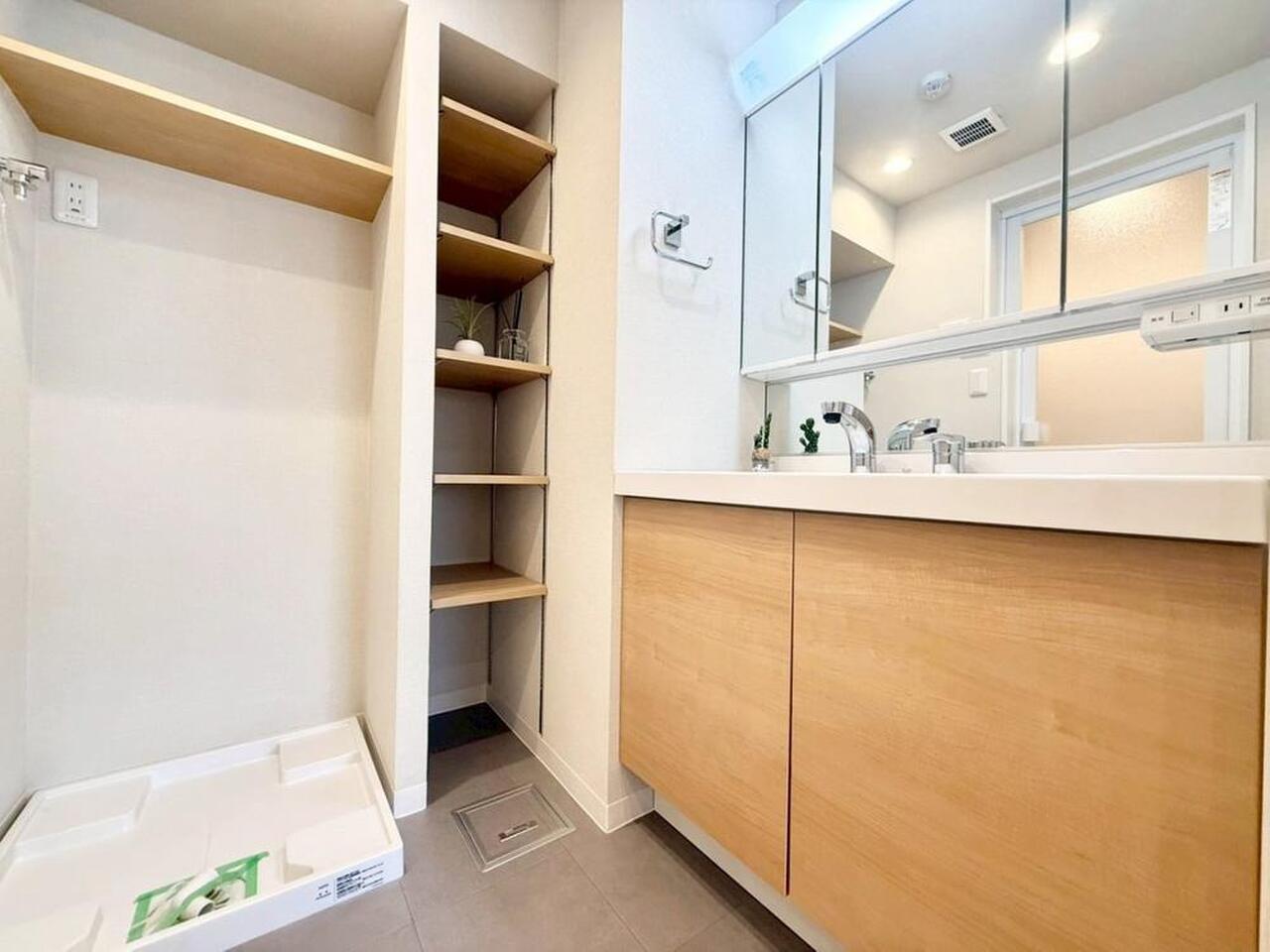 お家の中でも特にプライベートスペースとなる洗面所は、洗濯場所と浴室を同じ空間でまとめております。