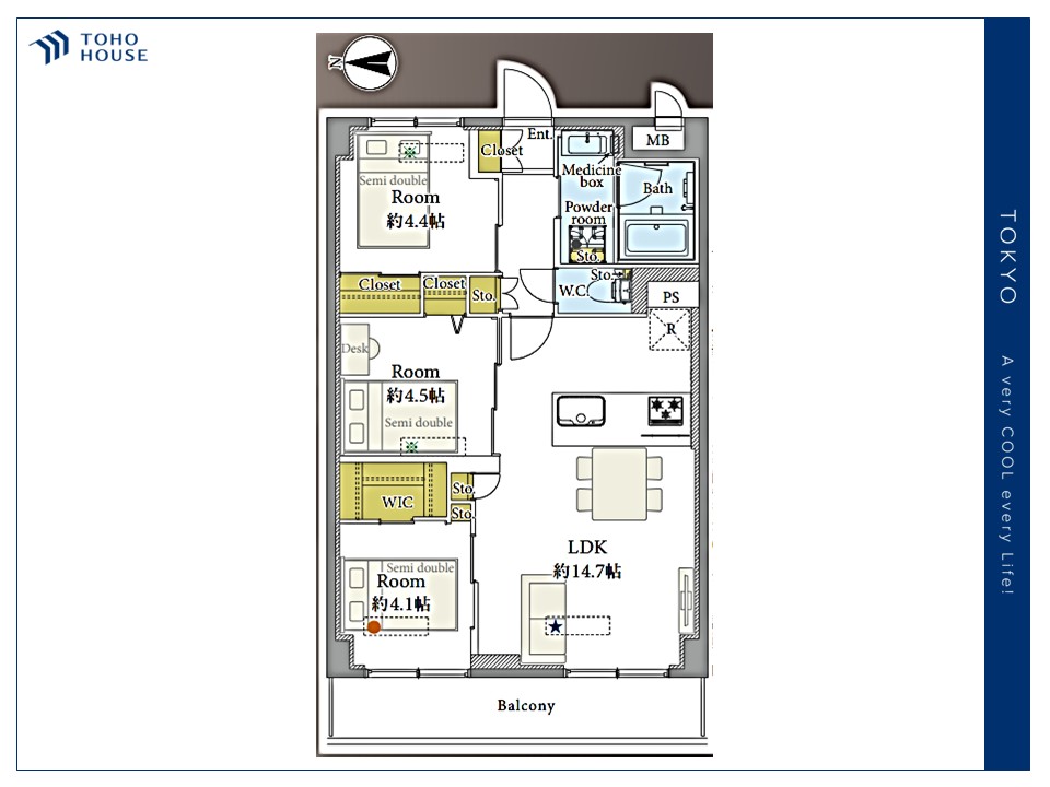 LDK14.7帖・洋室4.5帖・洋室4.4帖・洋室4.1帖