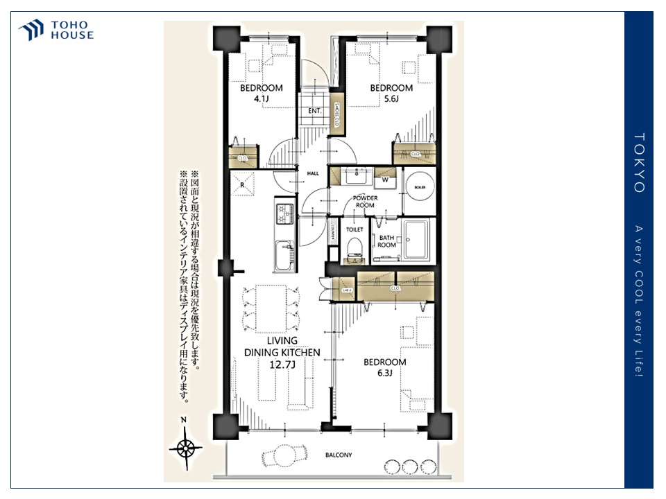 LDK12.7帖・洋室6.3帖・洋室5.6帖・洋室4.1帖