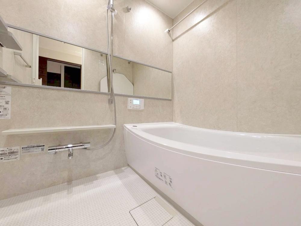 奥行きが長く足を延ばしてもラクラクのスペース。体の大きい方でも嬉しいワイドサイズ。また、カビが付きにくく軽くこすれば簡単に落ちるお掃除ラクラク仕様です。